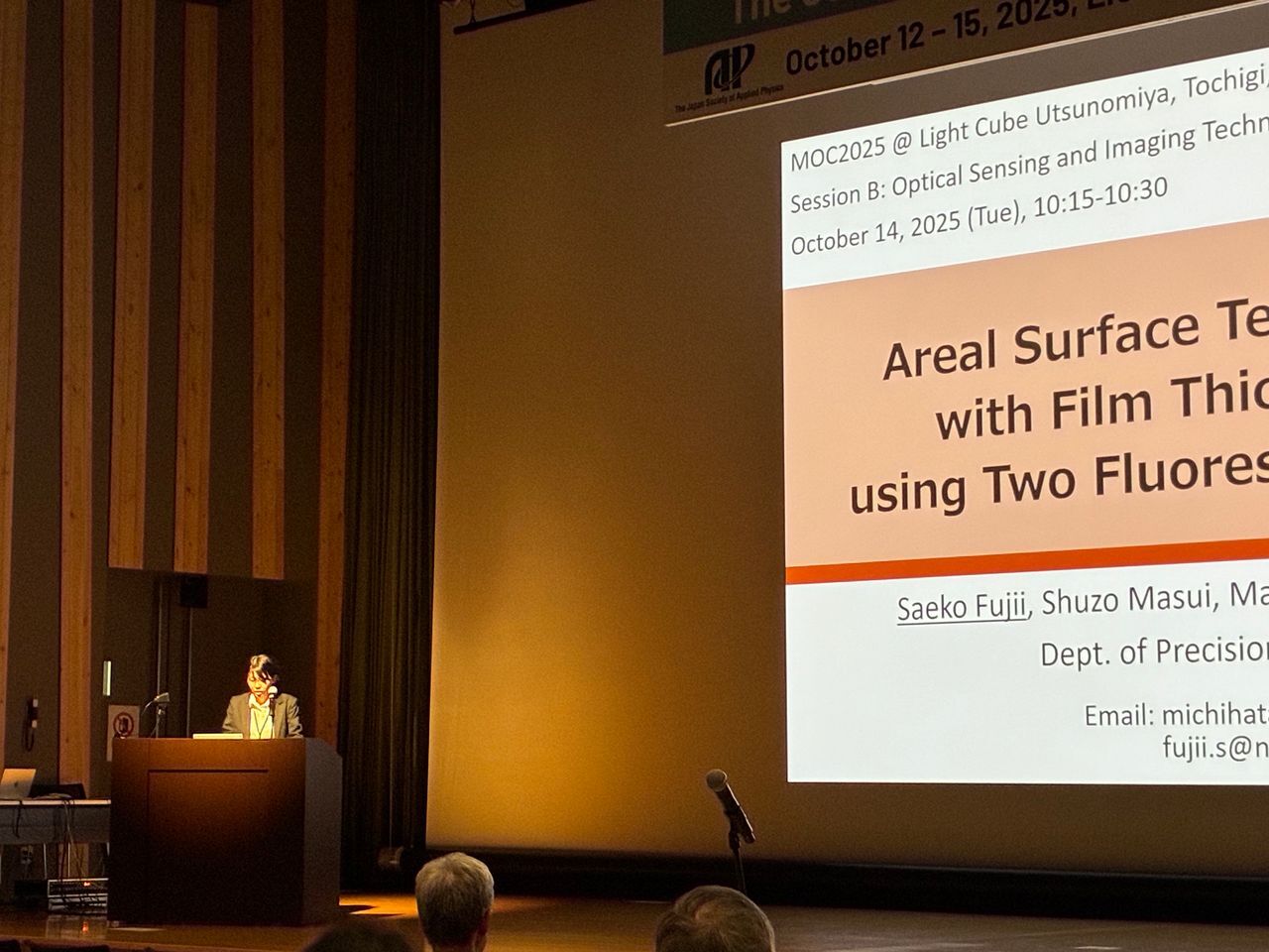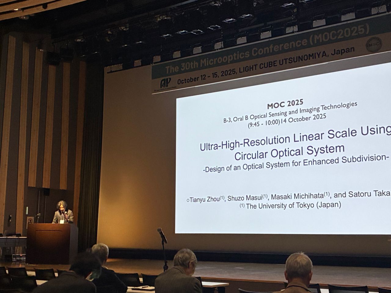 2025年10月12-15日に栃木県のLIGHT CUBE UTSUNOMIYAにて開催されたMOC2025 (The Thirtieth Microoptics Conference)で下記の通り研究発表を行いました。研究室からは2件の申し込みを行い、いずれもOral presentationに採択され、口頭発表を行いました